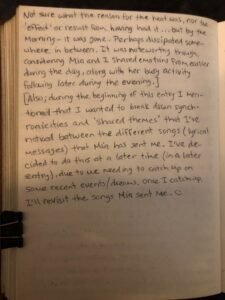 [Also; during the beginning of this entry I mentioned that I wanted to break down synchronicities and ‘shared themes’ that I’ve noticed between the different songs (lyrical Messages) that Mia has sent me. I’ve decided to do this at a later time (in a later entry), due to me needing to catch up on some recent events/dreams. Once I catch up, I’ll revisit the songs Mia sent me. 🙂