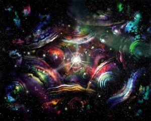 It was as if; as the earth and moon drew closer, I could see (like a mirror reflecting off the earth) other planets or large spherical spatial-bodies moving and warping/bending/wrapping across the surface of the earth. At certain points, the sight looked like a kaleidoscope of reflected and refracted colors and shapes, the images (or reflections) of the other planets even began to reflect “off” of the earth’s surface and hung semi-transparently in the blackness of space around the world.
