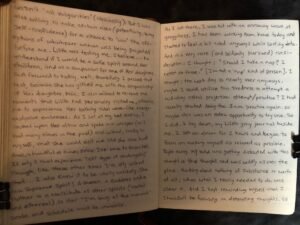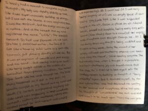 It has been less than 5 minutes since emerging from my bedroom having experienced this, and my body is still vibrating from the impact, my hands still shaky and tingling with a slight numbness. I’m typing this first, before adding it in writing to my journal, because I don’t want to have the words be sloppy and I need to record the details as fast as possible while the memories of this event are freshly vivid in my mind, having just happened.