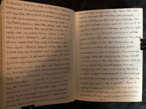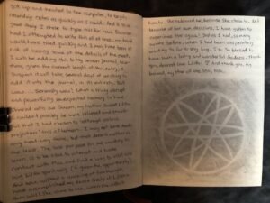 I turned off the alarm, slowly sat up and observed Lilith’s altar and painting silently for a long moment. Quietly whispering gratitude and praise. And turned my attention towards Mia’s altar and sacred space, offering her the same. Then immediately got up and headed to the computer to type all this out. Good thing I chose typing for now. Because had I attempted to write all this first, my hand would have tired quickly and I may have been at risk of losing some of the details of the moment. I will be adding this to my brown journal, however given the length of this entry; I suspect it will take several days of writing to add it into the journal, in its entirety.