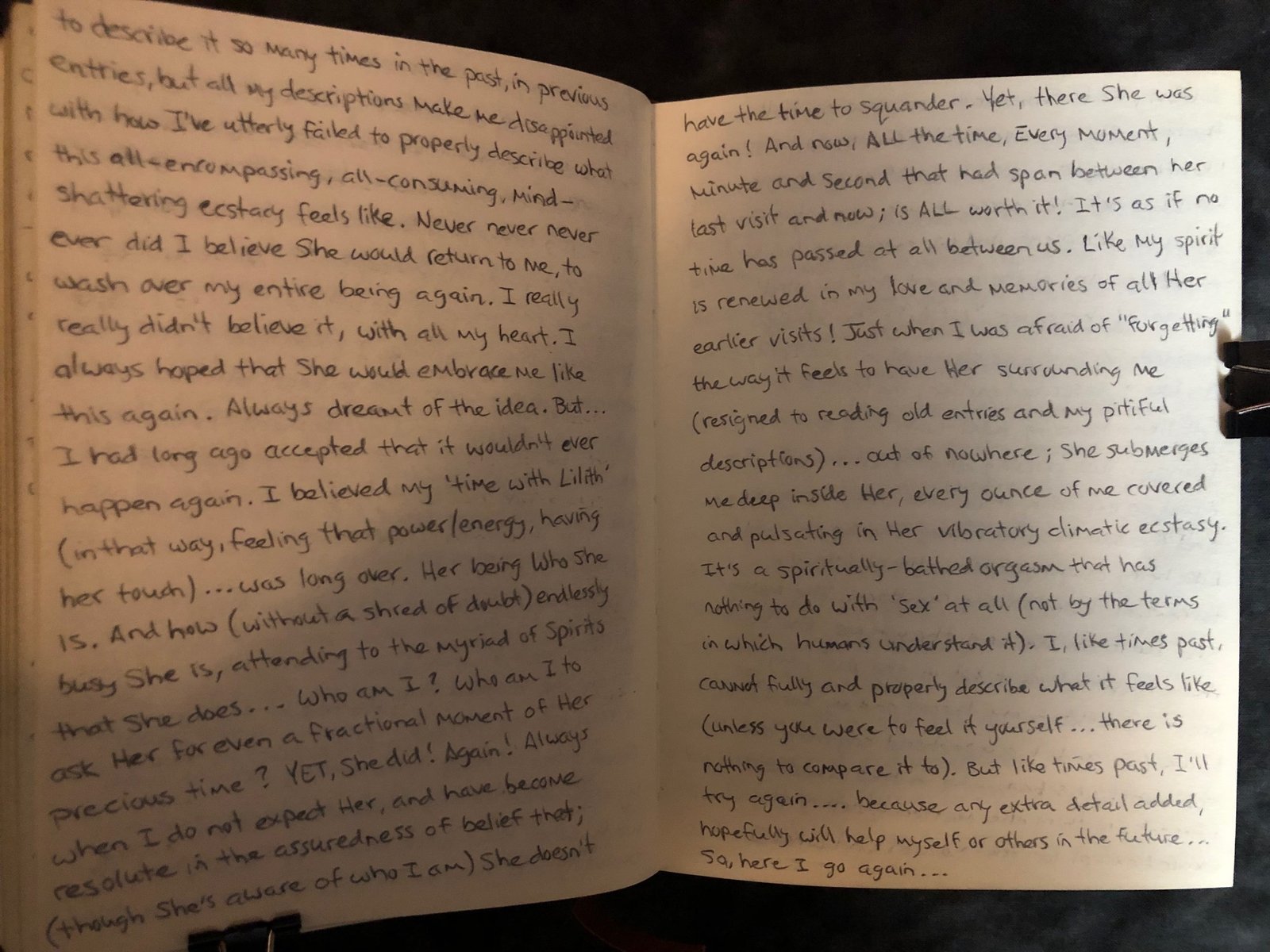 Never never never ever, did I believe she would return to me, to wash over my entire being again. I really really didn’t believe it, with all my heart. I always hoped. Always dreamt of the idea. But… I had long ago accepted that it wouldn’t ever happen again. My ‘time with Lilith’ (in that way, feeling those things, having Her touch)…was long over. Her being Who She is. And how (without a shred of doubt), endlessly busy She is, attending to the myriad of spirits that She does… Who am I? Who am I to ask Her for even a fractional moment of Her precious time?