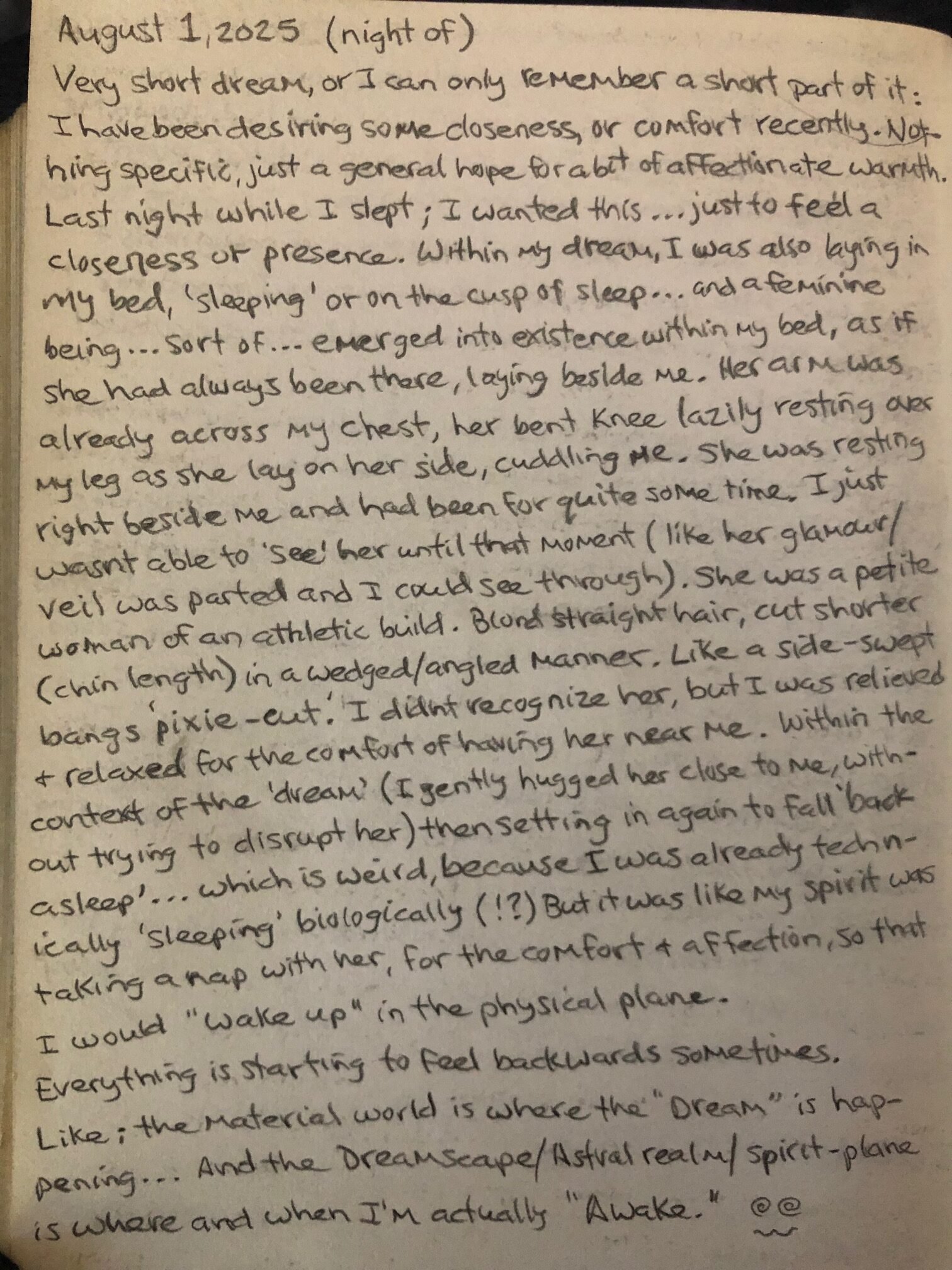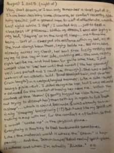 Within the context of the ‘dream’ (I gently hugged her closer to me, without trying to disrupt her) then setting in again, to fall ‘back asleep’ …which is weird, because I was already technically ‘sleeping’ biologically(!?) But it was like my spirit was taking a nap with her, for the comfort & affection, so that I would “wake up” in the physical plane.