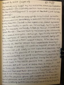And sure enough! It was like someone had thrown a blanket over a fire and smothered it. We were still having a sexual encounter with each-other (technically), but the… passionate/intimate “feeling”/exchange being shared between us, was gone. As in: I couldn’t even feel my own pleasure either. What was once a pleasing river of energy…had become a kinked-hose trickle. Only the tiniest bit…hardly even worth the effort of trying.