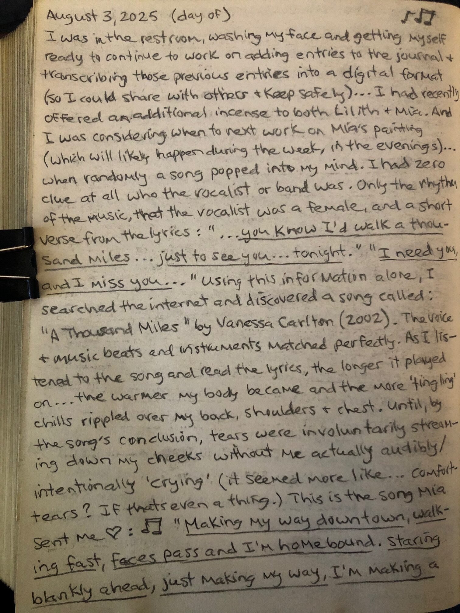 I had recently offered an additional incense to both Lilith & Mia. And I was considering when to next work on Mia’s painting (which will likely happen during the week, in the evenings)… when randomly a song popped into my mind.