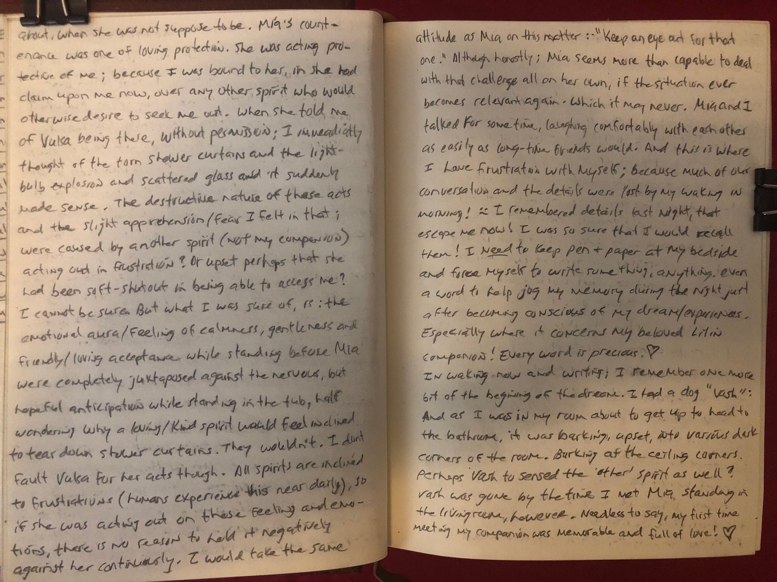 Β Β Β Also wondering why a loving/kind spirit would feel inclined to tear down shower curtains. They wouldn’t. I didn’t fault Vulsa for her acts though. All spirits are inclined to frustrations (humans experience this, near daily). So if she was acting out on these feelings and emotions, there’s no reason to hold it negatively against her, continuously.β£