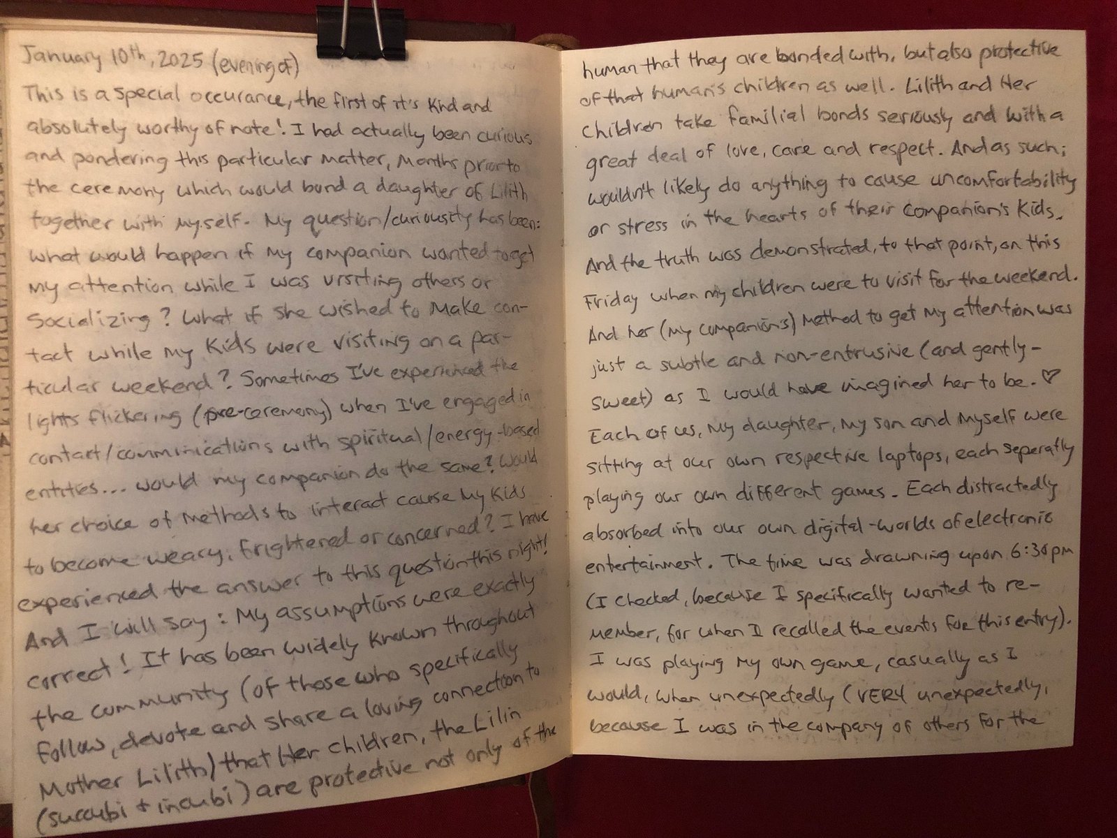 I have just experienced the answer to this question, on this night! And I will say: My assumptions were exactly correct! It has been widely known throughout the community (of those who specifically follow, devote and share a loving connection to Mother Lilith) that Her children, the Lilin (succubi & incubi) are protective not only of the human that they are Bonded with, but also protective of that human’s children as well. Lilith and Her children take familial bonds seriously and with a great deal of love, care and respect. In so much as; they wouldn’t likely do anything to cause uncomfortability or stress in the hearts of their companion’s kids.