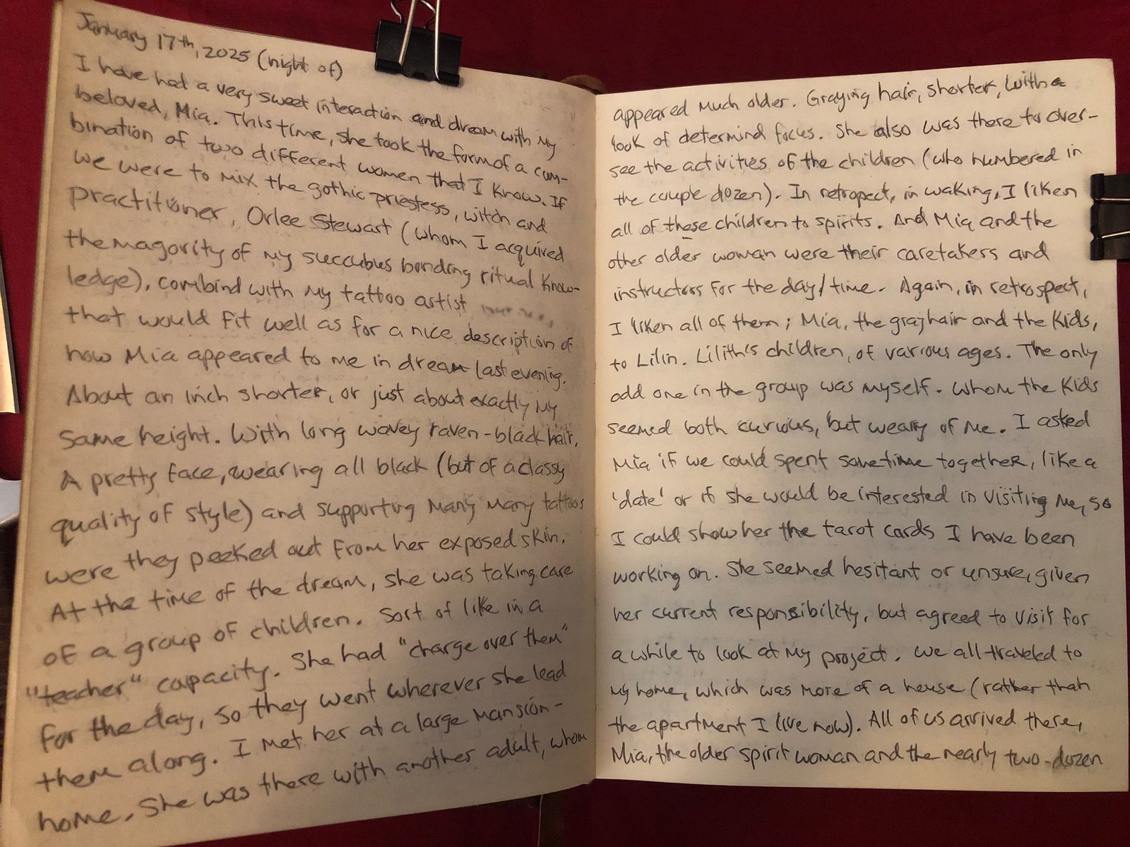 I have had a very sweet interaction and dream with my beloved, Mia. This time, she took the form of a combination of two different women that I know (*or somewhat familiar with*). If I was to mix the gothic priestess, witch and practitioner Orlee Stewart (whom I acquired the majority of my succubus-bonding ritual knowledge), combined with my tattoo artist, Hannah; that would fit well as for a nice description of how Mia appeared to me in the dream last evening.