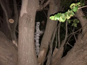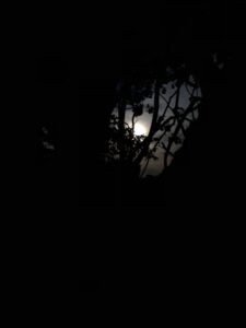 I began my journey at 9:30 pm, so it was already well into the night, but the moonlight provided me with all the light I needed. I found the tree, offered praises and gratitude to Lilith and offered the gifts as well. I hung a small dreamcatcher pouch (filled with Her dried/crushed rose petals) around a branch of the tree. Inside the pouch was a small carved crystal owl. I also wedged a round wooden sigil I crafted, into the branches as well. Her sigil. I spent some time admiring the Moon, the stars, the sky & tree.