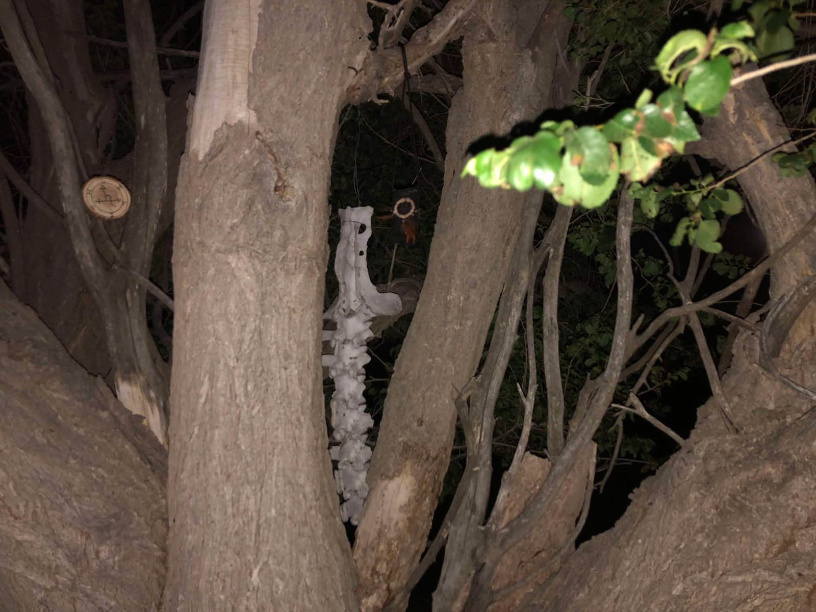 Before I left, I fixed the spine that had fallen from the tree since last I was there (1 year prior), securing it tightly. I gathered some of the other randomly scattered bones to take back home with me. They would do well to serve me as decorations, ritualistic tools, composite material or whatever other uses I may employ them. The journey home was long and burdened with the weight of the collected bones, but was well worth it. It was nearly night when I arrived home.