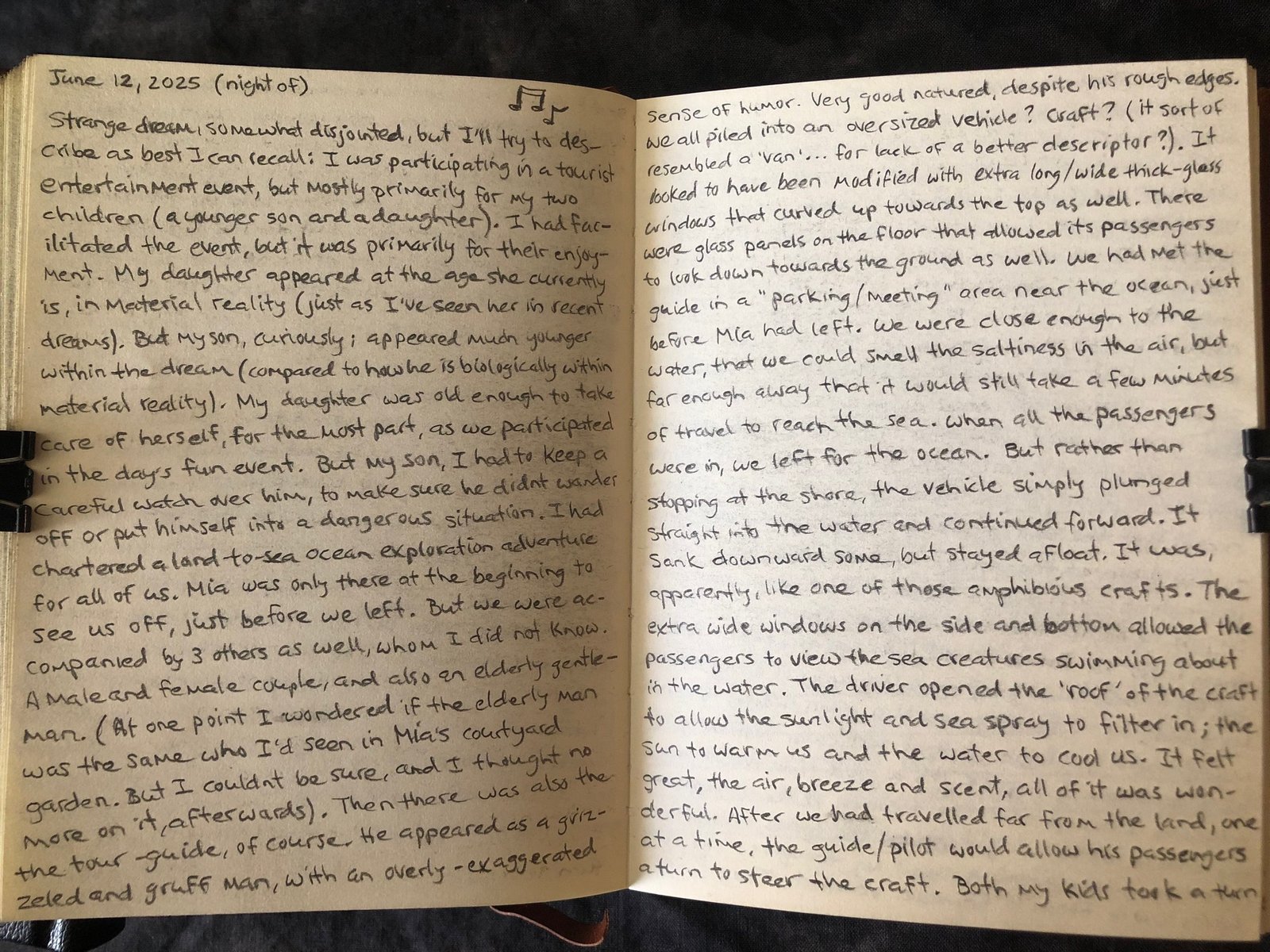 We all piled into an oversized vehicle? Craft? (it sort of resembled a ‘van’… for lack of a better descriptor?). It looked to have been modified with extra long/wide thick-glass windows that curved up towards the top as well. There were glass panels on the floor that allowed its passengers to look down towards the ground as well.