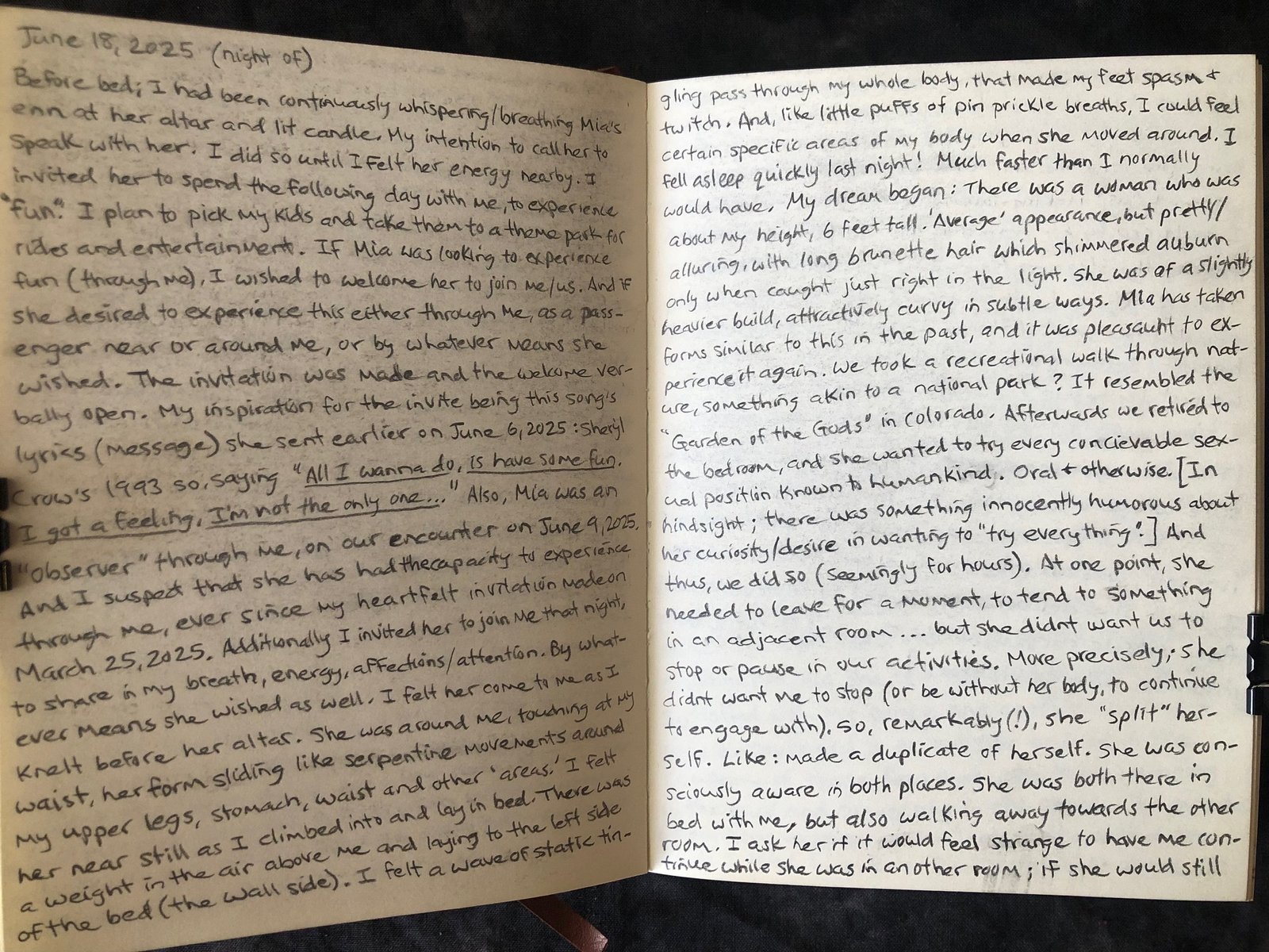 The invitation was made and the welcome verbally open. My inspiration for the invite being this song’s lyrics (message) she sent earlier on June 6, 2025: Sheryl Crow’s 1993 song saying “All I wanna do, is have some fun. I got a feeling, I’m not the only one…” Also, Mia was an “observer” through me, on our encounter on June 9,2025. And I suspect that she has had the capacity to experience through me, ever since my heartfelt invitation made on March 25, 2025.