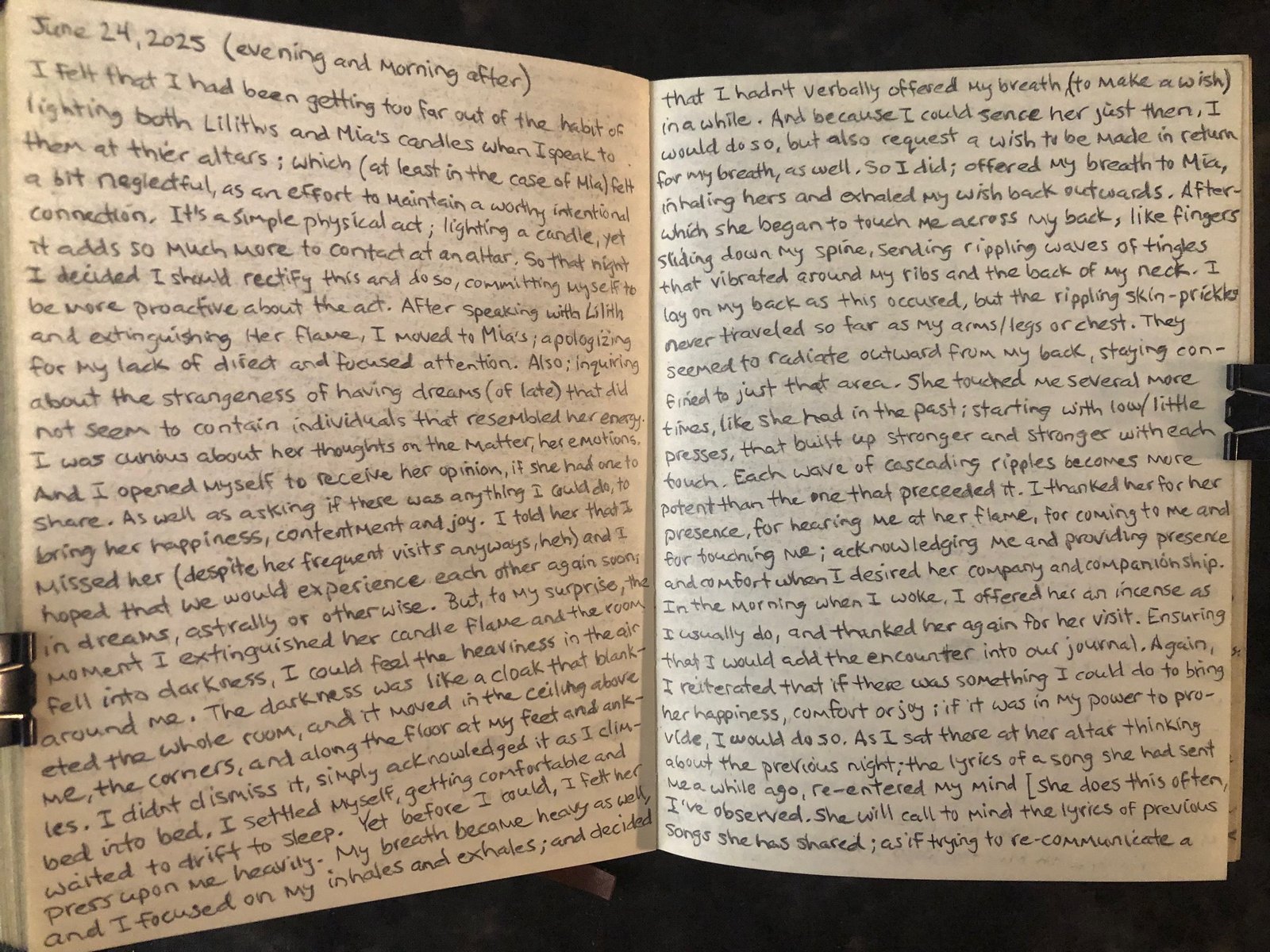Yet before I could, I felt her press upon me heavily. My breath became heavy as well, and I focused on my inhales and exhales; and decided that I hadn’t verbally offered my breath, to make a wish in a while. And because I could sense her just then, I would so so, but also request a wish to be made in return for my breath, as well. So I did; offered my breath to Mia, inhaling hers and exhaled my wish back outwards.