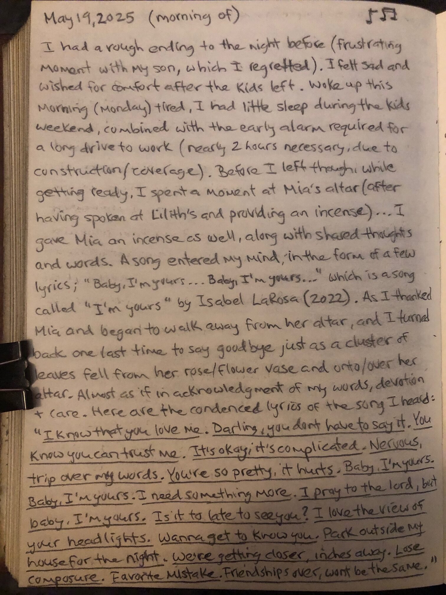 A song entered my mind, in the form of a few lyrics; “Baby, I’m yours… Baby, I’m yours…” which is from a song called “I’m Yours” by Isabel LaRosa (2022).