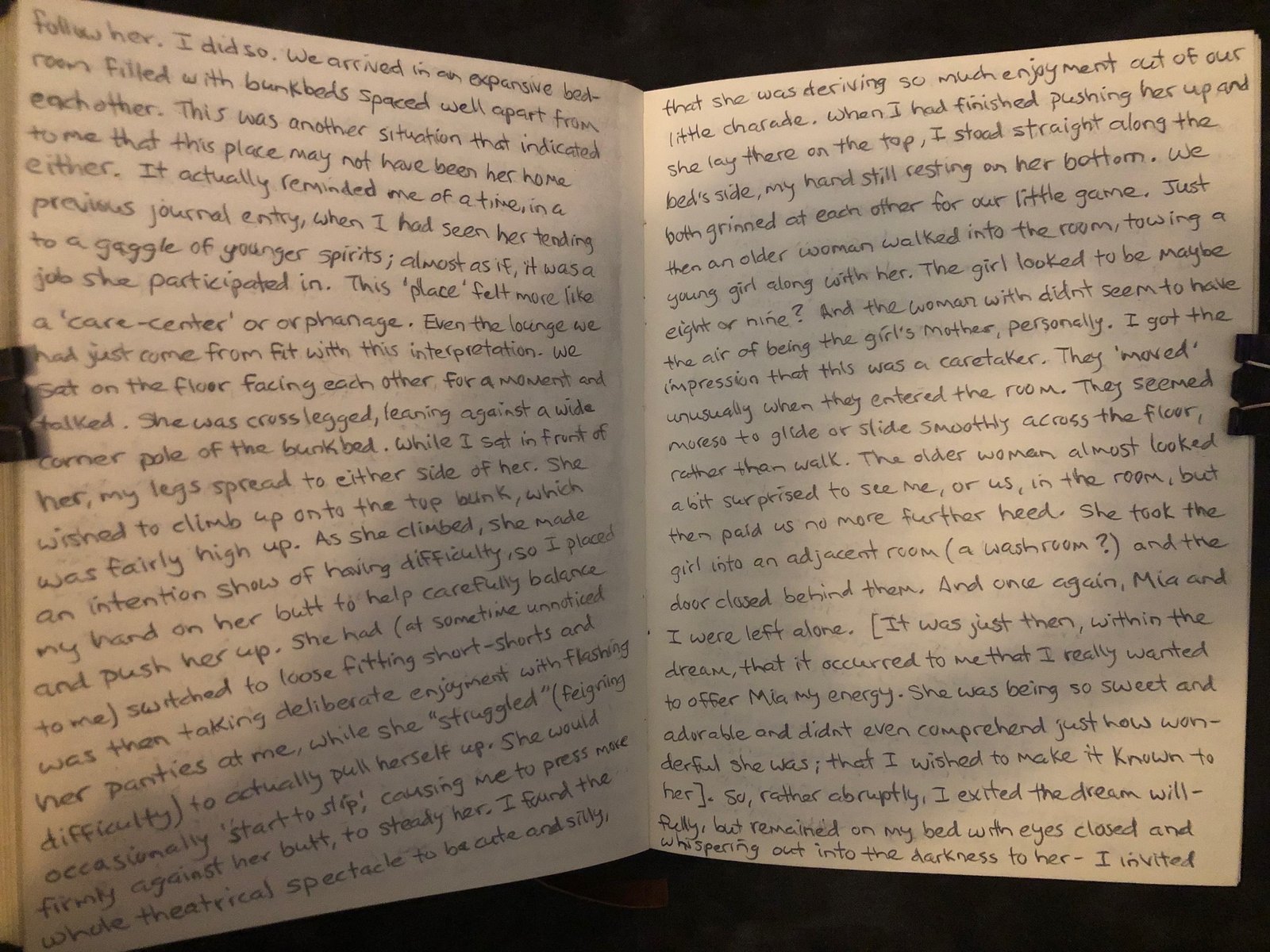 [It was just then, within the dream, that it occurred to me that I really wanted to offer Mia my energy. She was being so sweet and adorable and didn’t even comprehend just how wonderful she was; that I wished to make it known to her]. So, rather abruptly, I exited the dream willfully, but remained on my bed with eyes closed and whispering out into the darkness to her- I invited her, I offered her my energy, if she so desired it, I welcomed her and told her how sweet I believed her to be.