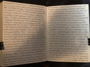 She stayed for a long while after that. I felt her there, pressing on my mind like light cotton, present within my thoughts. This was a new feeling also. She didn’t feel separate from me, while I was thinking. She felt like she was right there, presently feeling and experiencing my thoughts as I thought them.