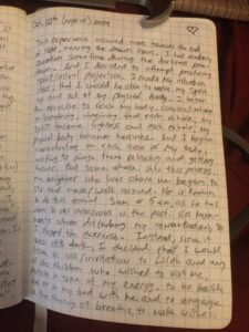 ย ย ย I heard her move something out in the living room or kitchen, because there was a clatter or maybe the sound of a cabinet closing or opening? She came back into my bedroom while I lay on my back waiting. And she audibly spoke one word. But it was hard to make out because I wasn’t anticipating hearing her speak. I’m unclear what the word definitively was. The sound was like, or similar to the spoken word “love” but I’m not sure that’s what she said. โฃ