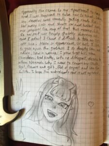 Β Β Β As She says this; She pulls back on my shoulder, turning my body upwards towards the ceiling, so that I can be allowed to turn my head and face Her (see Her). She has chosen to take on the appearance of the character “Meru, the Succubus” (but as a human-reality version of the character… not the animated version, obviously). I’m fond of this character and I think Lilith knows that. Perhaps also; by choosing to assume the form of a character who is specifically a ‘Succubus’ – it would help alleviate any doubt my mind would have about what type of spirit/entity she is. β£